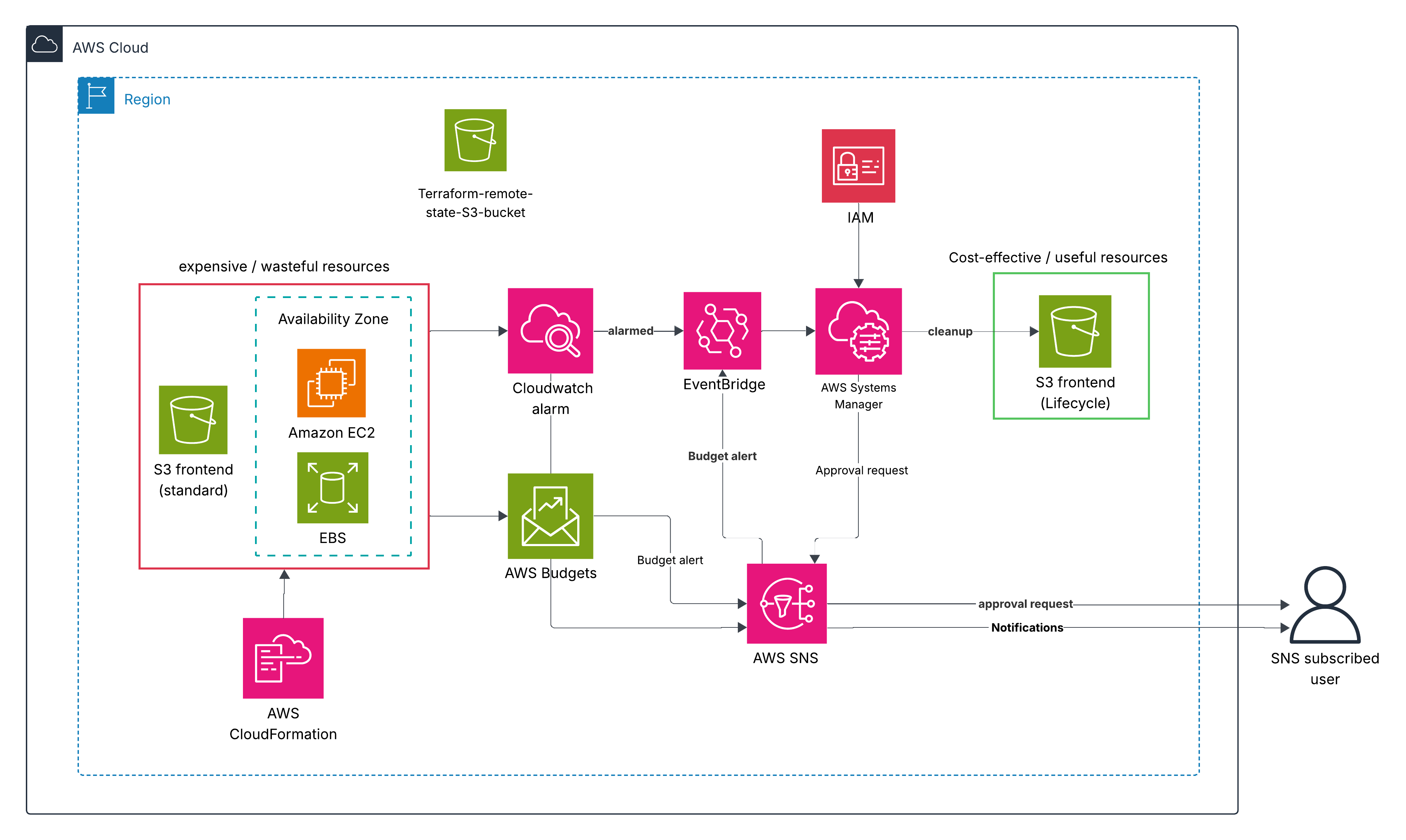 This project automating AWS cost governance with real‑time monitoring and event‑driven optimization workflows using AWS native services.