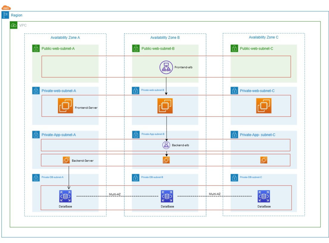 This project showcases a three‑tier architecture on AWS, demonstrating the fundamental separation of frontend, backend, and database components in a web application.